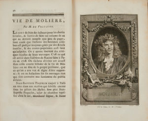 Édition ornée du portrait de Molière, gravé par Cathelin d'après Mignard, de 6 fleurons de titre et de 33 figures par Moreau le jeune, gravées par Baquoy, de Launay, Duclos, De Ghendt, etc.