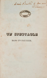 Alfred de MUSSET. — Un spectacle dans un fauteuil. — Paris, Eugène Renduel, 1833. — In-8, toile violine à points blancs (Reliure de la seconde moitié du XIXe).