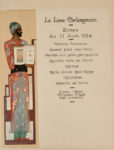 Tirage à 125 exemplaires sur Japon, celui-ci imprimé pour A. Bertaut (n° 65) et enrichi de 5 gouaches originales signées dont une pleine page, 2 demi-pages et 2 culs-de-lampe, tous ayant servi à l'illustration. L'exemplaire contient également 5 épreuves d'essai en noir sur divers papiers, une épreuve d'essai du menu, 4 épreuves du même dessin dont 3 en couleurs, et l'épreuve définitive.