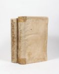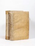 BOSIO, Antonio Roma subterranea novissima in qua post Antonium Bosium antesignanum Rome, Blasii Diversini et Zanobii Masotti, 1651 LES CATACOMBES DE ROME : PREMIÈRES REPRÉSENTATIONS D'UN MONDE SOUTERRAIN DE PEINTURES ET D'OBJETS ANTIQUES. BEL EXEMPLAIRE EN VÉLIN DE L'ÉPOQUE Première traduction latine due au Père Paul Aringhi, prêtre de l'Oratoire 2 volumes in-folio (414 x 268mm). Vignettes, initiales, bandeaux, culs-de lampe, fleurons gravés, nombreuses figures et inscriptions gravées sur bois dans le texte. Titres imprimés en rouge et noir, texte sur deux colonnes COLLATION : (I) : π4 ++6 1-3A-Z4 4A-M4 ; (II) : π6 1-3A-Z4 4A-X4 a-c4 (dernier f. blanc) ILLUSTRATION : (I) : un frontispice, un plan dépliant, 92 planches simples à pleine page ; (II) : un frontispice, 122 planches simples à pleine page (dont une hors collation), une planche à mi-page, sept planches doubles dont un plan RELIURE DE L'ÉPOQUE. Vélin souple, attaches, titraison ancienne à l'encre au dos Traces d'usage à la reliure. Trace de cachet sur les faux titres, quelques feuillets renforcés, déchirures sans manque aux ff. 4D4 (I) et 2M2 (II), brunissures marginales aux ff. X3 et X4 (II) Antonio Bosio, né à Malte vers 1576, fut le précurseur des études sur la Rome souterraine. Il descendit pour la première fois dans les galeries d'un cimetière de la voie Ardéatine le 10 décembre 1593. Durant trente-six ans, il parcourut tous les souterrains de Rome allant jusqu'à y passer des jours et des nuits sans remonter à la surface. Le crayon à la main, il relevait les inscriptions, dessinait les peintures pour décrire, d'après un ordre topographique, les cimetières et les objets découverts. Il mourut en 1629 en laissant deux volumes de notes manuscrites de plus de mille feuillets chacun confiés à la Biblioteca Vallicelliana à Rome. Son travail fut publié posthume, en italien, en 1632-1635. Cet ouvrage recense une trentaine de cimetières, fait référence aux martyrs et au soin donné par les chrétiens à l'ensevelissement des corps. Il s'appuie sur des relevés topographiques et des livres anciens pour expliquer le sens des peintures trouvées lors des fouilles. BIBLIOGRAPHIE : Brunet I, col. 1124 -- Berlin Kat., 1859 (sous le nom d'Aringhi) -- Cicognara 3585