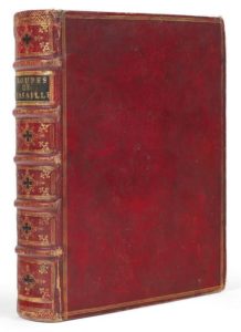 THOMASSIN, Simon Recueil des figures, groupes, thermes, fontaines, vases, statues, et autres ornements de Versailles, tels qu'ils se voyent à présent dans le château et parc Amsterdam, Pierre Mortier, 1708 LE STYLE DE VERSAILLES DIFFUSÉ EN EUROPE : LA SCULPTURE DES JARDINS ROYAUX. BON EXEMPLAIRE EN MAROQUIN À LA PROVENANCE INTÉRESSANTE. EXEMPLAIRE DE PIERRE BERÈS 4 parties en un volume in-4 (235 x 167mm). Titres imprimés en rouge et noir. ILLUSTRATION et COLLATION : frontispice gravé par Jan Granen, un plan dépliant et 218 planches gravés, 60 pp. de texte en français, latin, italien et hollandais. RELIURE ANGLAISE DE LA PREMIÈRE MOITIÉ DU XVIIIe SIÈCLE. Maroquin rouge, trois filets dorés en encadrement, dos à nerfs très orné avec quadrilobe mosaïqué de maroquin noir, tranches mouchetées de bleu. PROVENANCE : John Pennant (ex-libris avec mention d'achat datée de novembre 1750 sur l'un des feuillets de garde) -- George Hay Dawkins Pennant (1764-1840) avec son ex-libris armorié au contreplat du volume -- F. E. J. G. (ex-libris) -- Pierre Berès (1913-2008 ; Paris, 23 novembre 2010, n° 7). Quelques petites taches, petites déchirures restaurées dans une planche et dans le plan. Rares éclats restaurés à la reliure, mors fragiles BIBLIOGRAPHIE : Berlin Kat., 4212 (pour l'édition de 1695)
