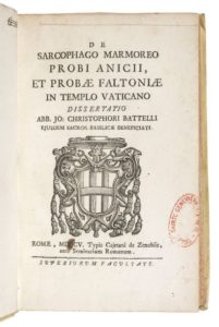 BATTELLI, Jean-Christophe De Sarcophago marmoreo probi anicii, et probae faltoniae in templo …