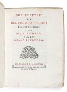 CELLINI, Benvenuto Due trattati. Uno dell'oreficeria, l'altro della scultura Florence, Nella …