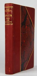 COCTEAU (Jean). OPIUM. JOURNAL D’UNE DESINTOXICATION. Paris, Storck, (1930). In-8, demi chagrin grenat à coins, filets dorés sur les plats, t. rouge, couverture conservée (Ruban, relieur à Villefranche)