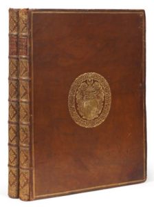 ZANETTI, Antonio Maria Delle antiche statue greche e romane, che nell'antisala della Libreria di San Marco, e in altri luoghi pubblici di Venezia si trovano, parte prima [-seconda] Venise, 1740-1743 SUPERBE EXEMPLAIRE DE DÉDICACE, CELUI DU ROI DE DANEMARK, RELIÉ À SES ARMES. LA SCULPTURE CLASSIQUE À VENISE ÉDITION ORIGINALE. L'ouvrage est dédié au roi de Danemark 2 volumes in-folio (540 x 390 mm). Titres imprimés en rouge et noir. Chaque page de texte dans un encadrement. Lettrines, vignettes et culs-de-lampe gravés COLLATION : (I) : 7 ff. n. ch., 50 ff. et 50 pl., 2 ff. n. ch. ; (II) : 3 ff. n. ch., 50 ff. et 50 pl., 1 f. n. ch. ILLUSTRATION : un frontispice gravé par Felicità Sartori d'après Giambattista Piazzetta et un portrait du dédicataire, Cristian VI de Danemark, hors texte gravé par Marco Pitteri d'après Giambatista Piazzetta et 100 planches (50 par volume) dessinées par les cousins Zanetti et gravées en taille-douce par G. A. Faldoni, G. Cattini, G. Patrini, G. Camerata, M. A. Pitteri, et d'autres RELIURE DE L'ÉPOQUE. Veau fauve, décor doré, armes au centre des plats, triple filet en encadrement, dos à nerfs orné, tranches dorées PROVENANCE : Christian VI, roi de Danemark (1699-1746 ; armes), dédicataire du livre Traces de frottement aux charnières Cet ouvrage rassemblant les statues des édifices publics de Venise a été réalisé par les cousins Zanetti : Antonio Maria Zanetti (1706-1778), bibliothécaire de San Marco, aujourd'hui Biblioteca Marciana, et son cousin aîné, Antonio Maria Zanetti (1679-1767), graveur et collectionneur de gemmes et médailles antiques. Parmi les cent figures représentées, celles des quatre chevaux de Saint-Marc, gravées par Giovanni Antonio Faldoni et Giovanni Cattini, est un chef-d'œuvre. «Cette œuvre marque une étape importante dans le développement du goût néoclassique à Venise» (Blackmer). BIBLIOGRAPHIE : Cicognara 3565 -- Berlin Kat., 4208 -- Blackmer 1868