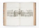 BOFFRAND, Germain De architectura liber... Livre d'architecture contenant les principes généraux de cet art... ouvrage français et latin [suivi de :] Description de ce qui a été pratiqué pour fondre en bronze d'un seul jet la figure équestre de Louis XIV Paris, Guillaume Cavelier, 1745 SUPERBE EXEMPLAIRE EN MAROQUIN BLEU DE L'ÉPOQUE ANCIENNES COLLECTION DES COMTES STROGANOV ET DE JACQUES BEMBERG ÉDITIONS ORIGINALES. Texte en français et latin Deux ouvrages en un volume in-folio (434 x 280mm) 1. Livre d'architecture. Vignette aux armes du Roi en tête de la dédicace gravée par Tardieu fils d'après François Boucher ILLUSTRATION : 68 planches, en grande partie double ou dépliantes, gravées en taille-douce par Babel (6), Blondel (10), Fonbonne (2), Hérisset (5), Le Geay (1), C. Lucas (6), J. de La Marcade (12), Moreau (2), Mutel (2) et P. Tardieu (12) ; douze sont non signées. Quelques erreurs de numérotation. Les planches XXI et XLVII n'ont pas été gravées et ne sont pas requises dans l'index 2. Figure équestre de Louis XIV. Même éditeur, 1743. Vignettes, bandeau, petits culs-de-lampe gravés sur bois ILLUSTRATION : 20 planches gravées d'après les dessins de Boffrand et Lesueur, dont le portrait équestre de Louis XIV d'après Lesueur gravé par Tardieu, certaines planches dépliantes et sur doubles ou simples pages gravées par Blondel ou Tardieu. L'ouvrage est bien complet de la planche du four imprimée sur double-page et qui “manque quelquefois” (Cohen-de Ricci) RELIURE DE L'ÉPOQUE. Maroquin bleu, filets dorés en encadrement, dos à nerfs orné, tranches dorées PROVENANCE : comte Grigori Alexandrovitch Stroganov (1823-1878 ; ex-libris, cote de bibliothèque à l'encre, timbre humide de la bibliothèque de l'université impériale de Sibérie, à Tomsk) -- Jacques Bemberg (ex-libris ; Paris, 6 mars 2014, n° 108) Germain Boffrand (1667-1754), originaire de Nantes, appartenait à une famille de peintres, de sculpteurs et d'architectes. Il fut formé par Jules Hardouin-Mansart qui le fit travailler à la réalisation de la place Vendôme en 1686, et par le sculpteur Bouchardon. À partir de 1699, Boffrand s'attacha aux grands noms du royaume, en particulier le duc du Maine et sa mère, la marquise de Montespan. Ses travaux les plus célèbres sont les intérieurs de l'hôtel Soubise (représenté dans ce livre) en 1732 et surtout, ses réalisations en Lorraine puisqu'il devint Premier architecte du duc Léopold en 1711. Il fut l'architecte du château de Lunéville, donna les plans de Commercy, de la Malgrange, d'Haroué construit entre 1720 et 1732, et de nombreux hôtels particuliers de Nancy. Il créa pour son ami et cousin le peintre Charles Le Brun une belle maison parisienne. Germain Boffrand est ainsi considéré comme le grand architecte du style Régence. Le second ouvrage de cet exemplaire rend compte de la fonte de la statue équestre de Louis XIV réalisée par Bouchardon, pour orner la place Vendôme, anciennement place Louis-le-Grand. En 1685, Louvois, ministre de la Guerre de Louis XIV, voulut créer une nouvelle place parisienne, dite place des Conquêtes à l'emplacement de l'hôtel de Vendôme. Le projet, également conçu par Jules Hardouin-Mansart, devait comporter, en son centre, une statue équestre de Louis XIV. Girardon réalisa une statue en bronze de sept mètres de haut (environ dix-sept avec le piédestal) de 1685 à 1687. En 1792, la sculpture de Girardon fut détruite. Le grand collectionneur de livres de la famille Stroganov fut le comte Grigori Alexandrovitch Stroganov (1770-1857). Sa collection fut augmentée par ses fils et petits-fils - dont Grigori Alexandrovitch Stroganov (1823-1878), possesseur de cet exemplaire. Les 22.000 volumes de sa bibliothèque furent offerts à l'université impériale de Sibérie, à Tomsk, en 1878, au moment de sa création. La bibliothèque de Tomsk revendit la majeure partie de ses livres en 1929, lors des campagnes de dispersion massive des biens culturels par les bolcheviques dans le cadre du premier “Plan quinquennal”. BIBLIOGRAPHIE : Cohen-de Ricci, p. 163 (pour les deux ouvrages) -- Millard, I, 30 (pour les deux ouvrages) -- Fowler, 53 -- Berlin Kat., 2402 -- BAL, I, 317-318 -- Cicognara, 44 et 3485 -- Sur la collection Stroganov : Galina Kolosova et Larisa Walsh, “The Stroganov Book Collection in the Context of Stalin's Campaign to Sell Russian Cultural Treasures Abroad”, in Slavic & East European Information Resources, 2016