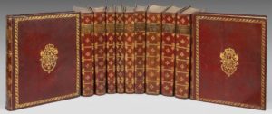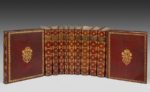 GORI, Anton Francesco Museum florentinum exhibens insigniora vetustatis monumenta quae Florentiae sunt in thesauro mediceo Florence, Michaël Nesteni et François Moücke, 1731-1766 LA NAISSANCE DE L'UN DES PLUS GRANDS MUSÉES D'EUROPE : LES OFFICES. MONUMENTAL CATALOGUE ILLUSTRÉ DES COLLECTIONS MÉDICIS. PREMIER INVENTAIRE VISUEL DE LA FUTURE GALERIE DES OFFICES. EXCEPTIONNEL EXEMPLAIRE DE DÉDICACE, RELIÉ EN MAROQUIN À L'ÉPOQUE, AUX ARMES DE LÉOPOLD II DE HABSBOURG-LORRAINE, GRAND-DUC DE TOSCANE, FUTUR EMPEREUR D'ALLEMAGNE ÉDITIONS ORIGINALES 12 parties reliées en 11 volumes in-folio (453 x 362 mm). Titres imprimés en rouge et noir. Vignettes, bandeaux, initiales et culs-de-lampe gravés sur cuivre, dont certains répétés COLLATION : vol. I : [a]-e4 f6 [A]-Z4 2A4 2B6 : LII-185-pp., (9) ff. ; vol. II : [a]-c4 d6 [A]-Y4 (Y4 blanc) : XXXVI-158 pp., (9) ff. ; vol. III : [a]-c4 d6 A-O4 : XXXV-111 pp. ; vol. IV : [A]-C4 : XXII pp., (1) f. ; vol. V : [a]-e4 A-Z4 2A-C4 : XXXX-205 pp., (1) f. ; vol. VI : [a]-e4 f6 A-Z4 2A-K4 2L6 : LII-274 pp., (1) f. ; vol. VII : [a]-b4 A-Z4 2A-K4 2L6 : XV-274 pp., (1) f. ; vol. VIII : [a]4 A-Z4 2A-P4 2Q6 : VII-313 pp., (1) f. ; vol. IX : [a]4 A-Z4 2A-S4 : VII-326 pp., (1) f. ; vol. X : [a]4 A-Z4 2A-P4 2Q6 (2Q6 blanc) : VII-313 pp. ; vol. XI : tome 1 partie 1 : π1 [a]-b2 A-N2 : (3) ff., IV-L pp., tome 1 partie 2 : [a]2 A-P2 : (3) ff., LVIII pp., tome 2 partie 1 : [a]2 A-N2 : (3) ff., L pp., tome 2 partie 2 : [a]2 A-P2 (sans P2 blanc) : (2) ff., LVIII pp. ILLUSTRATION : 741 PLANCHES gravées sur cuivre d'après les dessins de Giovanni Domenico Campiglia, Giovanni Domenico Ferretti et Antonio Pazzi. Soit : Gemmae antiquae (vol. I-II) : 200 planches ; Statuae antiquae (vol. III) : 100 planches ; Antiqua numistata (vol. IV-V-VI) : 121 planches ; Serie di ritratti degli eccellenti pittori (vol. VII-VIII-IX-X) : 220 planches ; Serie di ritratti dei celebri pittori (vol. XI) : 100 planches RELIURES ITALIENNES UNIFORMES DE L'ÉPOQUE. Maroquin rouge, décor doré, armes aux petits fers au centre des plats, frise en encadrement, dos longs ornés, tranches dorées, non rognés PROVENANCE : Pierre-Léopold de Habsbourg-Lorraine (1747-1792), Grand-Duc de Toscane sous le nom de Léopold Ier (1765-1790 ; armes), couronné empereur des Romains en 1790 -- Biblioteca Cagnola Milano (timbre à sec sur les premiers feuillets de chaque volume) et donc peut-être Lodovico Melzi d'Eril, 3e duc de Lodi Très rares et pâles rousseurs éparses, infimes mouillures angulaires à un volume L'érudit florentin Anton Francesco Gori (1691-1757) fut prêtre et antiquaire. Il consacra de nombreuses études aux antiquités romaines ainsi qu'au peuple étrusque, dont il était grand connaisseur. En 1735, il fut l'un des membres fondateurs de la Società Colombaria, un cercle d'érudits qui deviendra par la suite l'Accademia Toscana di Scienze e Lettere la Colombaria. Son grand-œuvre fut la direction et la rédaction de ce Museum florentinum, qui décrit pour la première fois les sculptures et les antiquités de la collection des Médicis. À la suite de la mort du dernier Grand-Duc Jean-Gaston de Médicis, en 1737, le marché de l'art européen avait aussitôt attendu avec avidité l'éventuelle dispersion des fameuses collections. La réputation de “paniers percés” des Habsbourg, héritiers de la Toscane et toujours à court d'argent, était forte. Il n'en fut rien. Au contraire, les Habsbourg sauvèrent Florence et réorganisèrent les collections. Ce catalogue illustré représente la première entreprise d'archive visuelle des collections médicéennes. Elle est née sous l'impulsion de plusieurs nobles et antiquaires de Florence, désireux d'établir un inventaire des trésors possédés par les Grands-Ducs de Toscane ainsi que ceux de quelques collections privées de la ville de Florence. Gori se retrouva à la tête du projet. La publication s'étendit sur trente-cinq années, de 1731 à 1766. Grâce aux savantes dissertations que contiennent les premiers tomes, Gori gagna rapidement une réputation européenne. Les travaux de dessins et de gravures furent confiés à Giovanni Domenico Campiglia, peintre et aquafortiste florentin. La première partie du Museum florentinum donne à voir les gemmes et les camées, la deuxième présente les sculptures, la troisième est consacrée aux médailles et monnaies, la dernière comprend trois cent vingt portraits des plus grands artistes européens : peintres, graveurs, architectes, etc. L'ouvrage eut successivement trois dédicataires. D'abord, Jean-Gaston de Médicis, fils de Cosme III, dernier Grand-Duc de Toscane de la lignée des Médicis (1723-1737), pour les trois premiers tomes. Le deuxième dédicataire fut évidemment François III de Lorraine, pour les tomes quatre à dix. Grand-Duc de Toscane (1737-1765) sous le nom de François Ier, il avait épousé l'archiduchesse Marie-Thérèse d'Autriche un an plus tôt, en 1736. Enfin, son fils, Léopold II, se verr