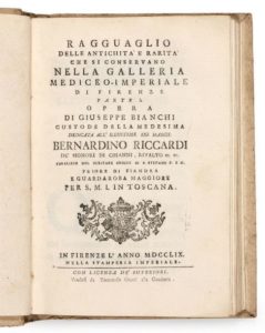 BIANCHI, Giuseppe Ragguaglio delle Antichità e Rarità che si conservano nella Galleria …