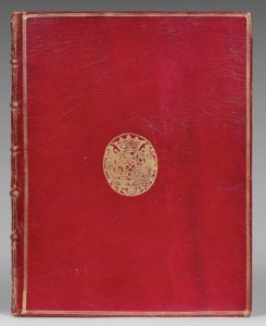 WINCKELMANN, Johann Joachim Lettre de M. l'abbé Winckelmann, antiquaire de Sa Sainteté, à monsieur le comte de Brühl, chambellan du roi de Pologne, électeur de Saxe, sur les découvertes d'Herculanum Dresde, N. M. Tilliard, 1764 RELIURE AUX ARMES DU COMTE HENRI DE CALENBERG. ANCIENNES COLLECTIONS D'AuguST FitzRoy (3e DUC DE GRAFTON), HANS FÜRSTENBERG ET OTTO SCHÄFER Première édition française. Traduction par Hendrik Jansen selon Brunet, mais plus vraisemblablement par Michael Huber et revue par Pierre-Jean Mariette d'après Vinet Petit in-4 (250 x 196 mm). Une vignette sur la page de titre et un grand bandeau gravés sur cuivre. Une initiale et un cul-de-lampe gravés sur bois. COLLATION : π2 A-N4 O2 : (2) ff., 107 pp. ILLUSTRATION : 1 frontispice gravé représentant Démosthène. ANNOTATION : quelques corrections à l'encre brune dans le texte d'une main contemporaine. RELIURE DE L'ÉPOQUE. Maroquin rouge, décor doré, armes au centre des plats, triple filet en encadrement, dos à nerfs orné, tranches dorées sur marbrure. Étui moderne. PROVENANCE : Henri Reinecke, comte de Calenberg (armes ; Bruxelles, 26 avril-8 mai 1773) -- August FitzRoy, 3e duc de Grafton, signature autographe et date sur la page de titre : “D. of Grafton, 1783” -- Hans Fürstenberg (ex-libris) -- Otto Schäfer (Sotheby's Londres, IV, 8 décembre 1995, n° 664). Infime accroc marginal au feuillet de titre Johann Joachim Winckelmann (1717-1768), archéologue et historien d'art, réfute dans cette lettre les positions des antiquaires napolitains et expose les siennes. Il raille notamment le comte de Caylus qui avait pris l'œuvre de Guerra, un faussaire, pour une peinture antique. L'ironie du sort a voulu que Winckelmann se laisse berner à son tour par d'autres peintures douteuses, des faux qu'on attribuera par la suite au peintre Casanova. L'édition originale du texte parut à Dresde, en 1762, sous le titre de Sendschreiben von den herculanischen Entdeckungen. Le comte de Caylus sut se venger : il fit traduire la lettre à l'insu de Winckelmann et réussit à la publier. Ceci explique donc pourquoi la traduction française n'est pas due à Hendrik Jansen, traducteur habituel de Winckelmann, mais à Michael Huber dans une version revue par Pierre-Jean Mariette. L'ouvrage reçut un certain succès et fit une regrettable publicité à Winckelmann. BIBLIOGRAPHIE : Brunet V, col. 1463 -- E. Vinet, II, 1708 -- Guigard II, 108 -- Armorial belge du bibliophile, p. 687 EXPOSITION : Lessing Ausstellung, Berlin, 1929 (étiquette sur le dernier feuillet de garde)