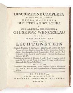 FANTI, Vicenzo Descrizzione completa di tutto ciò che ritrovasi nella galleria di pittura e scultura di S.A. Giuseppe Wenceslao, principe della casa di Lichtenstein Vienne, Giovanni Tommaso de Trattern, 1767 LE PREMIER CATALOGUE, IMPRIMÉ EN ITALIEN, DE L'IMMENSE COLLECTION DES PRINCES DE LIECHTENSTEIN. RARE CATALOGUE DE MUSÉE ÉDITION ORIGINALE In-4 (230 x 190 mm). Vignette en tête et quatre culs-de-lampe. COLLATION ET ILLUSTRATION : 3 ff. n. ch., 107 pp. ; 144 pp., 8 ff. n. ch. ; 1 gravure dépliante hors-texte gravée en taille-douce par Jacob Schlmulzer d'après Vincenzo Fanti. RELIURE DE L'ÉPOQUE. Demi-basane fauve, tranches jaspées rouges. Chemise et étui modernes. Reliure usagée avec manques, une planche déreliée, quelques piqûres Cette description est l'œuvre du peintre italien Vincenzo Fanti (1719-1776). Après avoir étudié avec Altomonte, il se rendit à Rome et à Turin. En 1744, il rentra à Vienne pour devenir maître de dessin de la famille impériale, puis surintendant de la Galerie Liechtenstein qui appartenait alors au Prince Johann Wenzell I. La Galerie Royale de Florence possède de lui un autoportrait. De même, un autre autoportrait, où Fanti tient en main le manuscrit de cette Descrizzione, est récemment entré dans les collections princières des Liechtenstein. L'ouvrage fut publié en 1767, année qui marqua la réorganisation de ces collections. Il commence par un bref traité «Della Pittura in generale», suivi d'une description du beau palais qui hébergeait la collection, importante œuvre de l'architecte italien Domenico Martinelli (1650-1718). En 1715, à la demande du Prince Eugène de Savoie, Vincenzo Fanti collabora avec Carlone (1686-1775) sur la décoration du palais du Belvédère ou encore avec Johann Michael Rottmayr (1654-1730) pour la Karlskirche à Vienne. Il fut par la suite nommé directeur de la Galerie de peintures du Palais Liechtenstein par le Prince Joseph Wenzel I de Liechtenstein. À ce titre, il réorganisa la Galerie princière et publia cet important catalogue. La fameuse Galerie Liechtenstein, commencée en 1692 et achevée en 1700, fut érigée pour le Prince Jean-Adam de Liechtenstein (1662-1712) dans le faubourg immédiat de la Vienne impériale. C'est ce Prince qui acquit les célèbres Rubens. Martinelli édifia peu de temps après le Palais Liechtenstein lui-même, situé Bankgasse, c'est-à-dire dans la ville elle-même. Le transfert des collections du palais de la Bankgasse vers la Galerie des faubourgs n'eut lieu qu'en 1807, si bien que la description topographique de Fanti nous offre le rare témoignage d'un ordonnancement des collections aujourd'hui disparu. La description des tableaux et sculptures s'enchaîne pièce par pièce ; chaque œuvre est précisément mesurée et on devine leur amoncellement. La seconde partie de l'ouvrage propose sur près de deux cents pages une biographie des artistes. À la fin de chacune d'entre elles, Fanti fournit des références bibliographiques relativement précises qui renvoient aux grands textes de l'histoire de l'art (Vasari, Sandrart, Félibien, etc.). L'un des derniers feuillets de l'ouvrage présente d'ailleurs, comme gage de sérieux scientifique, la précieuse liste de ces auteurs canoniques consultés par Vincenzo Fanti.
