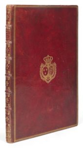CARBURI DE CEFFALONIE, Marin Monument élevé à la gloire de Pierre-Le-Grand, ou Relation des travaux et des moyens mechaniques qui ont été employés... Paris, Nyon aîné, Stoupe, 1777 SUPERBE EXEMPLAIRE DE MARIE-ANTOINETTE, RELIÉ EN MAROQUIN À SES ARMES. IL REJOIGNIT ENSUITE LES COLLECTIONS DU COMTE DE LA BÉRAUDIÈRE, DE JACQUES HENNESSY ET DE PAUL-LOUIS WEILLER. EXEMPLAIRE CITÉ PAR OLIVIER-HERMAL-DE ROTON ÉDITION ORIGINALE In-folio (433 x 278mm). Bandeau, vignette et fleurons gravés COLLATION : A-M2, soit 24 feuillets suivis de 12 planches numérotées ILLUSTRATION : 12 planches à double-page ou dépliantes gravées à l'eau-forte par R. Delvaux et Sellier d'après les dessins de L.-N. Van Blarenbergh et de Fossier RELIURE DE L'ÉPOQUE. Maroquin rouge, décor doré, armes au centre des plats, filets en encadrement, dos à nerfs orné, tranches dorées PROVENANCE : Marie-Antoinette, Reine de France (1755-1793 ; armes) -- comte de La Béraudière (vente de 1885) -- Jacques Hennessy (3 juillet 1929, n° 148) -- Librairie Pierre Chrétien (étiquette) -- Paul-Louis Weiller (Paris, 8 avril 2011, lot 672) Quelques légères traces de frottements au dos Cet ouvrage relate le transport du bloc de granit destiné à former le socle de la statue équestre de Pierre le Grand, à Saint-Pétersbourg. Cette statue avait été commandée par Catherine II au sculpteur français Étienne Falconet. Son socle, un rocher de 600 tonnes et mesurant 11 x 6 x 7 mètres de hauteur, provenait du golfe de Finlande. Le bloc fut déplacé jusqu'au bord de la mer, en passant par des collines, à l'aide de dispositifs ingénieux tels que des sphères de cuivre roulant sur des rails en bois et des équipes de centaines de moujiks tirant des câbles au rythme des tambours. De là, un énorme radeau attaché entre deux navires transporta le rocher sur la mer, jusqu'à l'embouchure de la Neva, à Saint-Pétersbourg. Cette statue de Pierre le Grand, sur son rocher de Finlande, domine toujours la place du Sénat à Saint-Pétersbourg (appelée “place des Décembristes” après la révolution), face à la Neva. Marin Carburi (1729-1782), ingénieur grec au service de Catherine II, gagna la France après cette mission et fit imprimer cet ouvrage admirablement illustré. Il retourna ensuite à Célaphonie (dépendant alors de Venise) pour y développer l'agriculture mais fut assassiné par ses ouvriers en 1782. BIBLIOGRAPHIE : OHR, 2508, fer 8 citant cet exemplaire -- Berlin Katalog, n° 1794 -- Pierre-Charles Levesque, Encyclopédie méthodique. Beaux-Arts, 1788, pp. 262-263 -- Hoefer, VIII, col. 679 -- l'exemplaire n'est pas cité dans Quentin-Bauchart