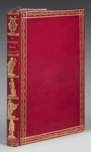 POCHINI, Antonio I Monumenti delle Belle Arti nella Città di Parigi. Epistole in versi Paris, Firmin Didot, 1809 TRÈS BELLE RELIURE EMBLÉMATIQUE DE LEFEBVRE, NEVEU ET COLLABORATEUR DE BOZERIAN L'AÎNÉ, DONT LE DOS EST ORNÉ DE FERS REPRÉSENTANT DES STATUES. FRONTISPICE GRAVÉ PAR SAINT-AUBIN. EXEMPLAIRE MORTIMER SCHIFF PUIS ROBERT ABDY. MANQUE AU GETTY ÉDITION ORIGINALE In-8 (217 x 139 mm). Texte en italien. COLLATION : 1-98 102 : (2) ff., 147-(1) pp. TIRAGE à 150 exemplaires au format in-8, celui-ci numéroté 126. CONTENU : Le Statue antiche del Museo Napoleone. Epistola al Cavalier Ippolito Pindemonte (pp. 1-25), I Quadri del Museo Napoleone. Epistola all'egregia dama Arpalice Pappafava (pp. 27-75), I Monumenti francesi del Museo de' Petits-Augustins. Epistola al Commendatore Melchior Cesarotti (pp. 77-110), Gli edifizi e i giardini. Epistola all'ornatissimo signor Gaetano Pinali (pp. 111-147). ILLUSTRATION : frontispice gravé par Saint-Aubin d'après J. G. Salvage, représentant le groupe du Laocoon. RELIURE DE L'ÉPOQUE SIGNÉE DE LEFEBVRE. Maroquin rouge à grain long, décor doré, frises et filets en encadrement sur les plats, dos long orné d'une lyre et de statues dorées, doublure et gardes de tabis vert, tranches dorées. PROVENANCE : Mortimer L. Schiff (1877-1931 ; ex-libris ; New York, III, 1938, n° 2105, dos de la reliure reproduit pl. 82) -- Sir Robert Abdy (1896-1976 ; ex-libris ; pas dans sa vente). Légères rousseurs éparses Antonio Pochini (1786-1829), noble de Padoue, était directeur du Giornale veneto de religione e di morale. Ses épîtres en vers évoquent les statues antiques et les tableaux du Musée Napoléon, le Musée des Monuments français (créé durant la Révolution dans les bâtiments et la chapelle du couvent des Petits-Augustins) et plusieurs édifices et jardins, dont l'histoire est précisée en note à la fin de chacune des quatre parties. BIBLIOGRAPHIE : Fléty, p. 108