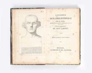 PÂRIS, Pierre-Adrien Catalogue de la bibliothèque de M. Pâris, architecte dessinateur de la Chambre du Roi ... suivi de la description de son cabinet Besançon, Deis, 1821 DONNER TOUTE SA COLLECTION POUR FAIRE RAYONNER SA VILLE NATALE : PIERRE-ADRIEN PÂRIS ET BESANÇON ÉDITION ORIGINALE In-8 (200 x 120 mm). ILLUSTRATION : 7 planches gravées à l'eau-forte dont six dépliantes. RELIURE VERS 1880. Veau gris, dos à nerfs orné et doré, tranches marbrées. Quelques épidermures BIBLIOGRAPHIE : G. Gazier, “les Vrais bibliophiles : Pierre-Adrien Robert Pâris”, dans Trésors des bibliothèques de France, t. XVIII, 1933, p.47-55 -- H. Richard, “La Bibliothèque municipale de Besançon”, dans Patrimoine des bibliothèques de France, t. 4, p. 28-39