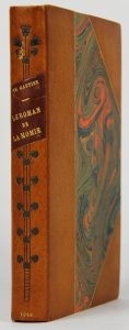 GAUTIER (Théophile. LE ROMAN DE LA MOMIE. Compositions de Rochegrosse. Paris, Ferroud, 1920. In-4°, demi maroquin sable, dos lisse orné d’une mosaïque, t. dorée, couv. et dos conservés (R. Jacquet, relieur)