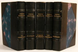 ROSTAND (E). ffiUVRES DIVERSES ILLUSTREES. Paris, Lafitte, 1938-39. 5 volumes petits in-4°, demi maroquin bleu marine à coins, couv. et dos conservés (Reliure de l’époque)