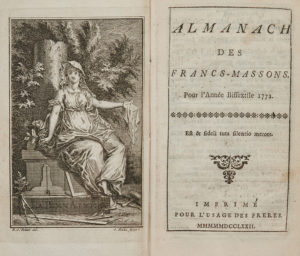 ALMANACH DES FRANCS-MASSONS. 1769 et 1772. 2 volumes. — 1769 : 48-(2 blanches) pp. ; étiquette manuscrite sur le premier plat. — 1772 : 48-(2 blanches) pp. ; reliure frottée.
