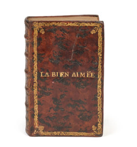 fleurons en écoinçons, mention dorée « LA BIEN AIMÉE » au centre du premier plat, tranches dorées en partie antiquées (reliure de l'époque).