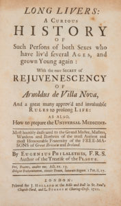 LONG LIVERS : A Curious history of such persons of both sexes who have have liv'd several ages, and grown young again : with the rare secret of rejuvenescency of Arnoldus de Villa Nova, and a great many approv'd and invaluable rules to prolong life :...