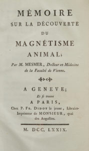 MESMER (Franz-Anton). — Mémoire sur la découverte du magnétisme animal. — À Genève ; et se trouve à Paris, chez P. Fr. Didot le jeune, 1779. — Petit in-8, demiveau brun marbré, dos lisse cloisonné et fleuronné avec pièce de titre...