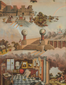 UNITED STATES OF AMERICA. — Chromolithographie maçonnique. — États-Unis, XIXe siècle. — In-plano, encadrement sous verre. — 56,5 x 44 cm chacune.