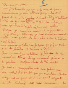 Gaston CHAISSAC (1910-1964). L.A.S., [vers 1960] ; 1 page et demie in-4, au stylo bille rouge.{CR}Il a du mal à travailler, mais a l’idée de nouveaux tableaux. « Vous aimeriez peut-être mes fantaisies que je fais parfois avec des planches de...