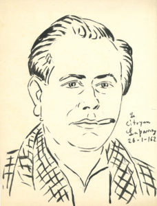 Julio Pagès LAPARRA (1914-1978). 25 dessins originaux, la plupart signés, 1961-1962 ; sur 17 feuillets in-4 (env. 32 x 25 cm).{CR}Dessins au crayon ou à l’encre. Portraits de Pierre et Monique Lhoste, de Winston. Churchill, Pierre Humbourg,...