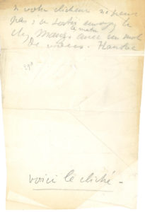 Henri de TOULOUSE-LAUTREC. L.A.S. ; 5 lignes au crayon noir sur 1 page petit in-4 (papier calque).{CR}« Si votre clicheur ne peut pas s’en sortir envoyez le chez Manzi le matin avec un mot de vous » ; il ajoute, sous un espace laissé...
