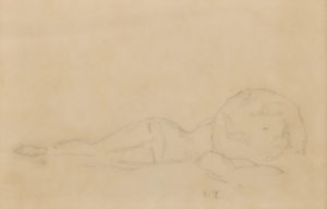 Kees VAN DONGEN (1877-1968). Dessin à la mine de plomb, signé V.D. ; à vue 11,3 x 17,5 cm (encadré).{CR}Femme allongée en maillot. Certificat joint de Mme Van Dongen (1969).