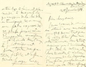 frère profondément aimé…ça va être effroyable »… Il demande de repousser les cours qu’il devait donner au printemps à l’automne et de les faire « coïncider, avec l’aide de Brunetière, avec mes concerts que, cette fois, je donnerai coûte que coûte […] Mon désarroi est très grand – Pour me consoler j’ai pondu une 3e Sonate pour piano […] et je demande à Marcel la permission de la lui dédier, en témoignage de reconnaissance »… – 8 juillet. « Comptez absolument sur moi pour cet hiver : même malade, je serai à mon poste […] Je vais admirablement, en pleine composition »… {CR}2 avril 1935. Il est plongé dans « mon gribouillage sur papier réglé, ma suprême volupté. Je n’ai pas fini la copie de la Sonate de Marcel, car je veux y faire 2-3 retouches, incorrigible ! »… – 20 août. Il fait suivre une lettre de recommandation pour le violoniste canadien Lucien Martin (il demande à Mme Ciampi de s’en occuper), au dos de laquelle il se livre à quelques réflexions sur le répertoire violonistique qu’il trouve « miteux » : « Ne pourrait-on pas, pour élargir mon champ d’action, demander à Monteux de me céder les sonates P° et Vn seulement »… – 2 novembre. Il ne peut quitter la Roumanie et a décommandé sa tournée de décembre et celle d’Amérique ; il ne sait même pas s’il pourra venir au printemps : « Pourrez-vous patienter jusque là pour faire les annonces nécessaires ? […] Néanmoins je puis vous assurer que mon travail de composition bat son plein, et que ma santé est parfaite »…