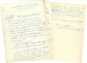 (8 p.) ; Au Musée de la France d’Outre-Mer (6 p.) ; La cuisine de madame (4 p.) ; La “Victoire” et la “République” à l’Exposition (7 p.) ; Roland Garros (10 p.) ; Roland Garros au-dessus de tous (6 p.) ; Clément Ader, le premier homme qui a volé (8 p.) ; La Tapisserie royale, impériale, nationale, populaire, française (6 p.) ; Les soixante dix, soixante quinze, quatre vingts ans de X.Y.Z. (7 p.) ; Un Fauconnier haricotier (8 p.) ; Un Conseil de l’Ordre des Plaques bleues (8 p.) ; Lettre à M. Monnet député, rapporteur du budget des Beaux Arts, chef des Faucons Rouges (23 p.) ; Livres (F. de Miomandre, R. Martin du Gard, Ch. Maurras…, 11 p.) ; La Maison des Goncourt (10 p.) ; En Alsace (11 p.) ; Si les Goncourt étaient là (4 p.) ; Ne réveillez pas… (4 p.) ; Au pays des Gorges rondes (5 p) ; Récapitulation du “Goncourt” (6 p.). Plus divers fragments.{CR}On joint 30 L.A.S. à Pierre Lhoste, 1932-1942, plus des notes autographes, et des photos (dont 2 signées).