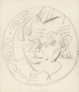 [Louis-Ferdinand CÉLINE]. GEN-PAUL (1895-1975). Dessin original, Céline ; crayon noir sur papier calque, diamètre 19,5 cm sur feuillet 24 x 20 cm (sous verre){CR}Projet pour la médaille représentant son ami Louis-Ferdinand Céline.{CR}On joint...