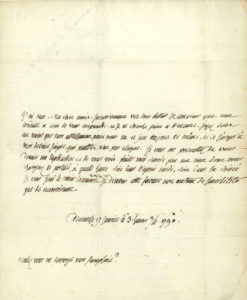 sure au moins que mon attachement pour vous est et sera toujours le même, et ce jusqu’à mon dernier soupir, qui peutêtre n’est pas eloigné ». Il la prie de lui accorder la faveur d’un entretien pour une explication...