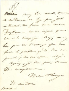 Victor HUGO. L.A.S., mardi 31 août [1841], à Hippolyte Cogniard, directeur de la Porte Saint-Martin ; 1 page in-8.{CR}Il demande une loge pour sa femme qui « doit revoir Ruy Blas et revient exprès pour cela de la campagne. Soyez assez bon pour...