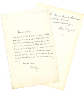 LITTÉRATURE. 5 L.A.S. ou pièces.{CR}Alain Bosquet (dédicace), Édouard Dujardin (sur ses Cahiers idéalistes), Eugène Labiche (à Pingard, 1888), Henry Murger (lettre et poème autogr.).