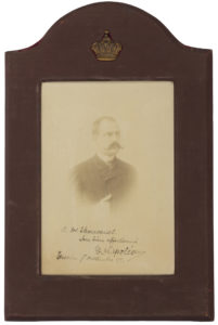 Victor BONAPARTE, Prince NAPOLÉON (1862-1926). Photographie avec dédicace autographe signée, Turin 7 septembre 1889 ; à vue 29 x 18 cm (encadrée).{CR}Beau portrait en buste, dédicacé à un des fils du diplomate Édouard Thouvenel (1818-1866),...