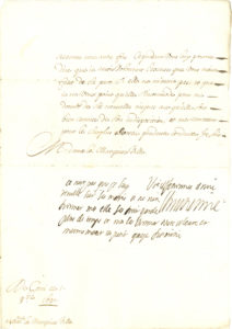 Fossano 1642-1644, à la Marquise Villa ; 6 pages et demie in-fol. ; en français.{CR}Coni 25-29 septembre et 8 octobre 1642. Au sujet de sa fille Louise, malade, à laquelle elle envoie son médecin, et de l’estimation des pierreries qu’elle lui a offertes. Elle prie la marquise de sermonner sa fille au sujet des cadeaux que lui fait son mari qu’elle doit estimer et « garder soigneusement afin qu’il connoisse par là comme elle chérit tout ce quoi vient de sa part & quil aye occasion de l’en aymer davantage car si elle en usoit autrement il auroit lieu de demeurer peu satisfait, ce qui ne pourroit que produire de mauvais effects »… [La Princesse Louise (13 ans) épouse le 29 septembre 1642 son oncle le Prince Maurice de Savoie (49 ans) pour sceller la réconciliation de Chrestienne avec ses beaux-frères.]{CR}Fossano 4 avril 1644, au sujet d’un jugement concernant le comte Mazin.
