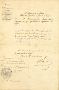 service sur sa carrière militaire, principalement en Algérie, et ses décorations ; signatures de maréchaux : Pélissier duc de Malakoff (4), Randon (2), Vaillant, de généraux : du Barail, Castelnau, Détrie, Martimprey, Valensi, et de ministres (J. Cambon, pour la décoration de Nichan Iftikhar)… Une lettre de J. Castagnary concerne l’état d’abandon des antiquités de la région d’Oran (1888). Une lettre d’A. Mouliéras, du musée d’Oran, remercie la veuve Demaëght de son don (1901). Plus divers doc. joints, dont une carte ancienne Mauretania et Numidia.