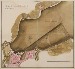 LA ROCHELLE. Plan et imprimé.{CR}Plan, plume et aquarelle [1759] (35,5 x 37,5 cm) : Plan du Port de La Rochelle et de ses abords.{CR}Ganet père, Première suite de l’adresse aux citoyens de La Rochelle, sur le commerce maritime (La Rochelle, V....