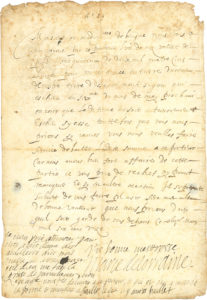 cire rouge aux armes.{CR}Sur le château d’Ussé. Elle envoie « une quittance de deux mil quatre cens livres pour une année entière du revenu de nostre terre d’Ussé et Mont Sigou » (en Touraine), bien que le terme ne soit pas encore échu, et prie de remettre cette somme au porteur « car nous avons bien fort affaire de cette partie »… De sa main, elle demande de faire dire pour elle trois messes à Notre Dame des Ardilliers « en attandant que Dieu me fase la grasse de parachever mon voiage »…