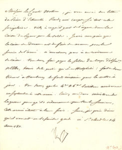 NAPOLÉON Ier. L.S. « NP », Saint-Cloud 14 août 1811, au comte Mollien (ministre du Trésor public) ; la lettre est écrite par Méneval ; 1 page in-4.{CR}Il lui envoie deux lettres de Davout, prince d’Eckmuhl. « Rendez-moi compte si tout...