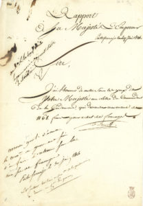 NAPOLÉON Ier. Apostille autographe signée « NP » sur un « Rapport à Sa Majesté l’Empereur » signé par le général comte DROUOT, Portoferrajo 29 juin 1814 ; 1 page in-fol.{CR}Drouot transmet à l’Empereur « une lettre du...