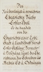 allemand.{CR}Recueil de jurisprudence de procès conjugaux au XVIIe siècle et au début du XVIIIe, dans la ville et la province de Zurich, mais aussi dans une grande partie de la Suisse : Thurgau, Winterthur, Saint-Gall, Appenzell, etc.