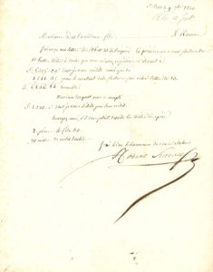 Robert SURCOUF (1773-1827) corsaire et armateur. L.S., Saint-Malo 9 septembre 1820, à Messieurs Desbouillons fils à Rennes ; demi-page in-4, adresse avec marque postale.{CR}Lettre d’affaires, avec comptes après la fourniture de « 11 balles...