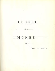 °VOYAGES. Tapuscrit, Le Tour du Monde par Marthe MERLE, 1899 ; un vol. in-4 de 181 p., rel. demi-basane brune à coins.{CR} Intéressant récit d’un tour du monde, depuis le départ de Marseille à bord du Tonkin, le 18 avril 1899, par...