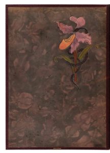 BAUDELAIRE (Charles). Les Fleurs du mal. Paris, Imprimé pour Charles Meunier, 1900. In-4, maroquin bordeaux, double filet à froid, doublure de veau mauve marbré dont celle du contreplat supérieur est ornée d'un grand motif mosaïqué (une vipère enroulée autour d'une fleur d'orchidée au naturel), couverture et dos, étui (Ateliers Laurenchet). Saisissante illustration en couleurs de Carloz Schwabe, comprenant une couverture, un frontispice, un fleuron de titre, 9 planches hors texte et 12 en-têtes et culs-de-lampe. Tirage à 77 exemplaires numérotés seulement, celui-ci sur vélin du Marais. Les plats de la reliure d'éditeur exécutée en veau mauve marbré par Charles Meunier ont été rapportés et soigneusement montés en doublure. Exemplaire comportant une suite en noir des illustrations.