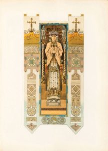 DIEHL (Charles). Théodora, impératrice de Byzance. Paris, H. Piazza, 1904. Petit in-4, veau bleu foncé, bordure de maroquin brun estampé de fleurons à froid et de feuillage doré, croix grecque de maroquin noir au milieu des quatre côtés, dos orné de même, jeu de filets intérieur, doublure et gardes de soie multicolore, tête dorée, couverture et dos (Reliure de l'époque). 63 compositions en couleurs et or de Manuel Orazi, dont 12 hors-texte. Tirage à 300 exemplaires, celui-ci sur vélin à la cuve. Il porte cette annotation à l'encre : Exemplaire unique spécialement rehaussé d'aquarelles et d'or. Reliure d'amateur, dos passé. On joint : BERTHEROY (Jean). Les Vierges de Syracuse. Paris, Ollendorff, 1902. In-8, bradel demi-toile (Reliure moderne). Illustration en couleurs de Manuel Orazi. Rousseurs.