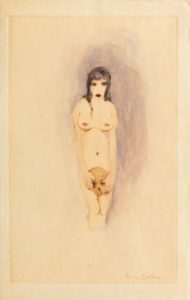 HARAUCOURT (Edmond). La Légende des sexes. Poèmes hystériques. S.l., Imprimé sous le manteau et ne se vend nulle part, s.d. (vers 1930). In-8, broché, boîte. Un frontispice aquarellé et 16 pointes sèches originales de Frans de Geetere, et 10 pointes sèches supplémentaires du même. (Pia, col. 768.) Tirage à 200 exemplaires, celui-ci un des 30 sur chine contenant en supplément un croquis original, une aquarelle, 10 planches refusées et un cuivre.