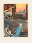 RÉGNIER (Henri de). Trois contes à soi-même. Paris, Les Cent bibliophiles, 1907. Petit in-4, maroquin bleu marine, dos orné, doublure de maroquin rouge orné d'un large encadrement de veau marbré avec large fleuron doré et mosaïqué aux angles, gardes de moire verte, tranches dorées sur témoins, couverture et dos (Ch. Meunier 1919). 40 miniatures de Maurice Ray gravées à l'eau-forte en couleurs par A. Bertrand et tirées au repérage, et un frontispice en bistre. Tirage à 130 exemplaires sur papier filigrané. Petites rousseurs sur la couverture de parchemin et sur la page lui faisant face.