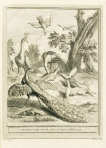 LA FONTAINE (Jean de). Fables choisies mises en vers. Paris, Desaint et Saillant, Durand, 1755-1759. 4 volumes in-folio, veau écaille, triple filet, dos orné, pièces rouges et vertes, dentelle intérieure, tranches dorées (Reliure de l'époque). Superbe édition, illustrée d'un frontispice avec le portrait de La Fontaine, et de 275 figures hors-texte de Jean-Baptiste Oudry gravées en taille douce par les meilleurs artistes de l'époque. La planche pour la fable Le Singe et le léopard est en premier tirage, avant l'inscription. Mors restaurés et desséchés.