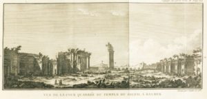 VOLNEY (Constantin-François). Voyage en Syrie et en Égypte, pendant les années 1783, 1784 et 1785. Seconde édition, revue et corrigée. Paris, Desenne, Volland, 1787. 2 volumes in-4, veau écaille, triple filet doré, dos orné, pièces de titre rouge et de tomaison noire, tranches marbrées (Reliure de l'époque). Première édition in-4, ornée de 5 planches dépliantes : 2 cartes (Égypte et Syrie), un plan du temple du Soleil de Balbek, et 2 vues gravées sur cuivre représentant les ruines de Balbek et celles de la cité de Palmyre. Relation estimée, l'une des meilleures sur la Syrie et l'Égypte. Exemplaire en grand papier, relié à l'époque en veau écaille. Planche dépliante des ruines de Palmyre légèrement roussie. Petite tache dans la marge de la p. 122 au tome I. Tome II, coiffes et mors voisins restaurés.